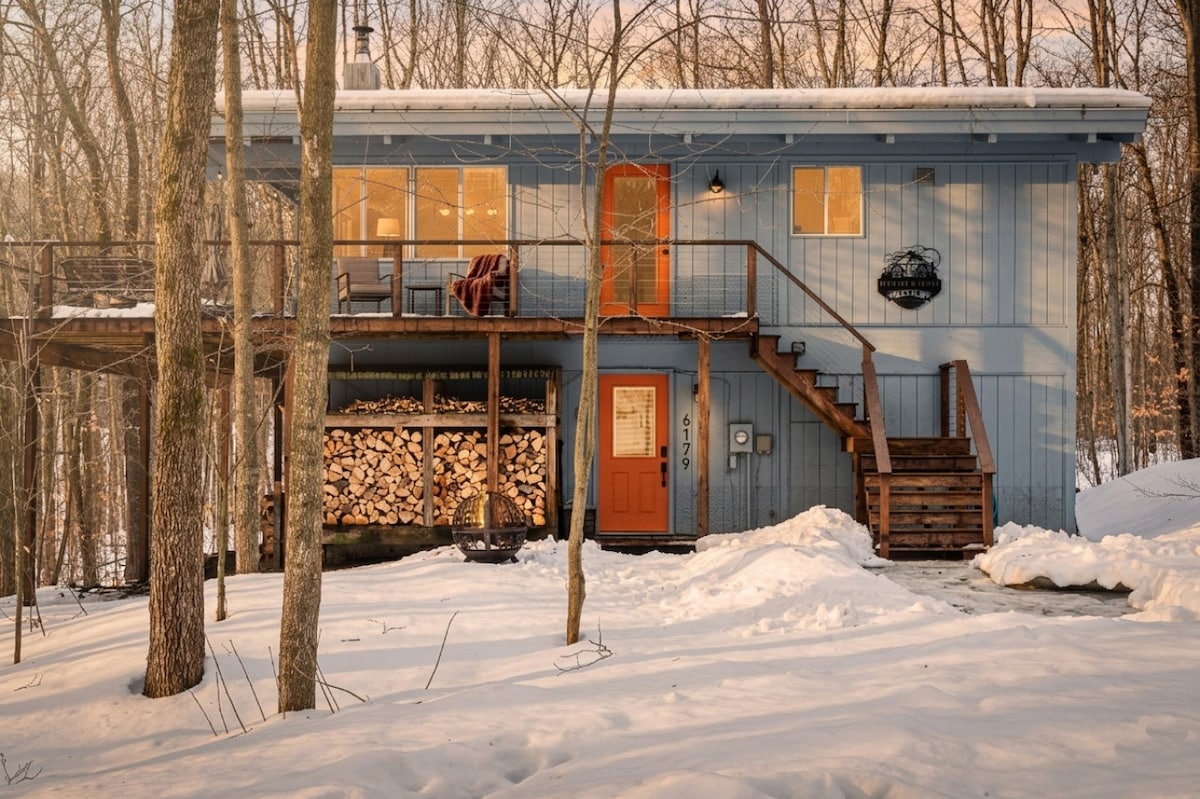 Escape to a peaceful woodland chalet tucked in the trees near Shanty Creek Resort. This cozy northern Michigan retreat is perfect for skiing, golfing, lake days, and relaxing up north. Start your morning with coffee on the spacious deck surrounded by towering pines, spend the day exploring Bellaire, Lake Bellaire, and nearby trails, then return to unwind in the private hot tub or gather around the fire pit under the stars. The chalet offers a cozy space for families and friends to relax!