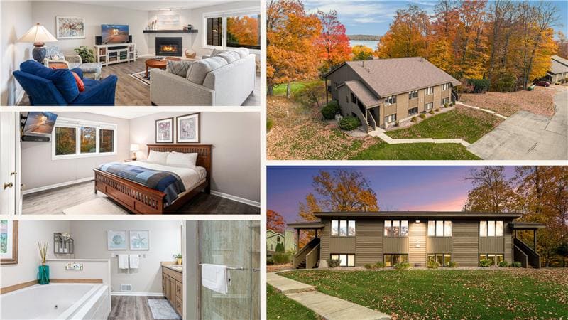 Пентхаус верхнього рівня розташований на схилі та біля поля для гольфу та має 2 великі спальні та 2 ванні кімнати, склепінчасті стелі, дров 'яний камін та 3 балкони з сезонним панорамним видом на гірськолижні схили та зелені фервеї Schuss. З головного люкса відкривається чудовий вид на Schuss Hole №1 + ванна з великою ванною. Забронюйте помешкання та насолоджуйтеся всіма заходами, ресторанами та магазинами, які можуть запропонувати Шанті-Крік, Беллер, Торч-Лейк і Північний Мічиган!