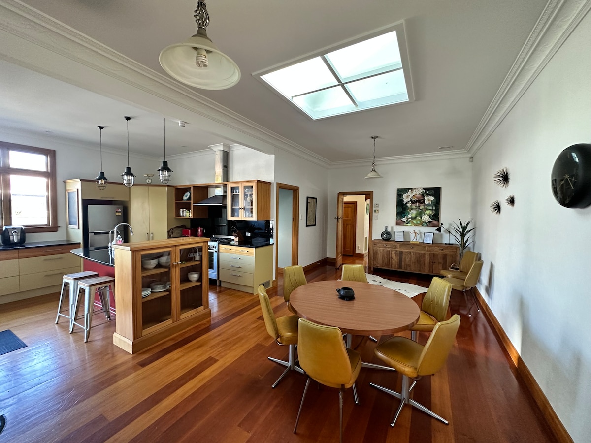 Приватна автономна квартира з двома спальнями, вітальнею відкритого плану, їдальнею, міні-кухнею та ванною кімнатою. Головна спальня з ліжком queen-size. Другу спальню можна використовувати як спальню або як окремий окремий кабінет. Доступне портативне дитяче ліжечко. Великі вікна від підлоги до стелі та розсувні двері у вітальні відкриваються на приватне закрите патіо. Квартира має тепловий насос, повністю ізольована та з подвійним склом. Телевізор має NZ Freeview. Бездротовий та дротовий доступ до Інтернету на всій території.