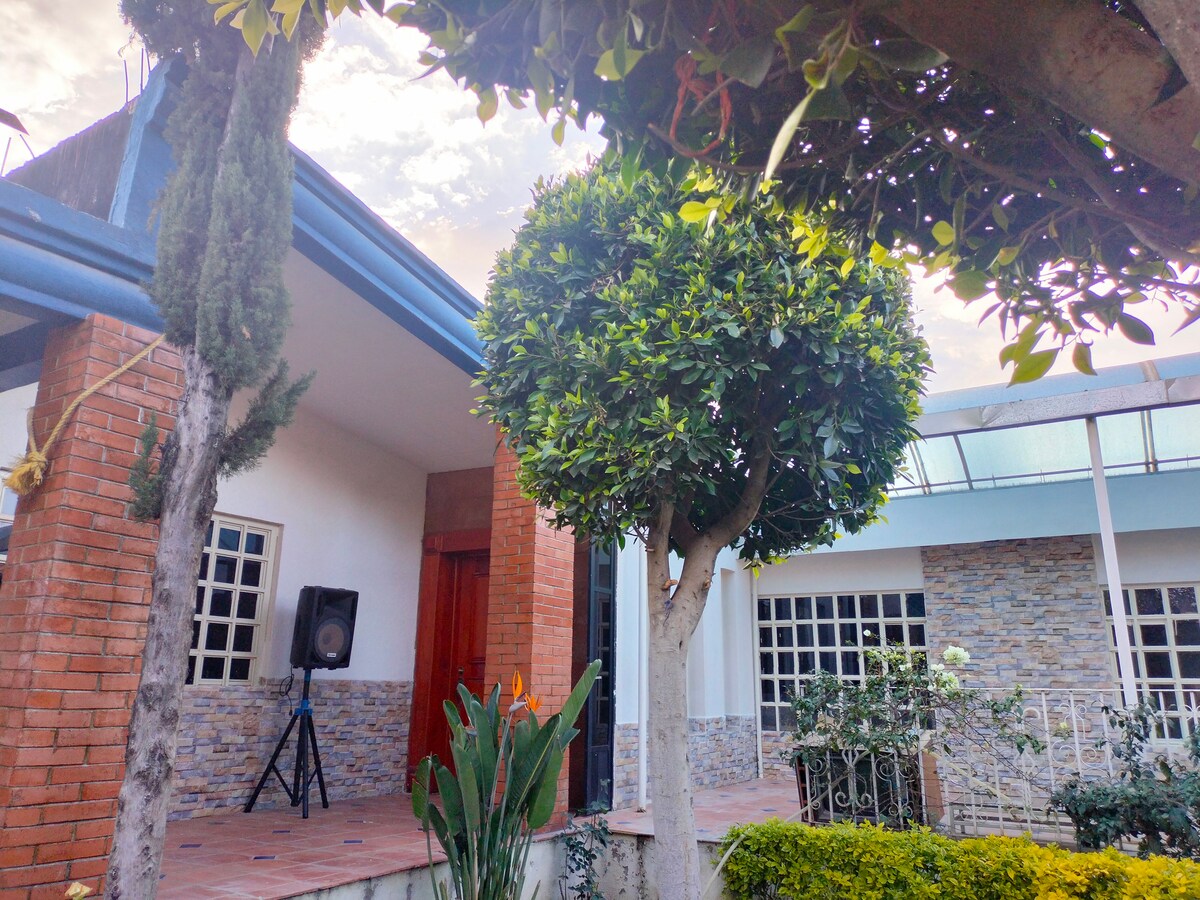 Насолоджуйтеся комфортним і тихим перебуванням у цьому приватному будинку з 1 спальнею, який ідеально підходить для пар. Всього в 8 хвилинах від центру міста, він поєднує в собі приватність і гарне розташування. Ви будете почуватися як удома, тут є великий сад, де можна помедитувати та відпочити. Ідеально підходить для відпочинку Помешкання •1 спальня •Цілий будинок •Кухонна зона •Великий сад •Парковка Розташування •8 хвилин від центру міста Тласкала • Тихий і безпечний район