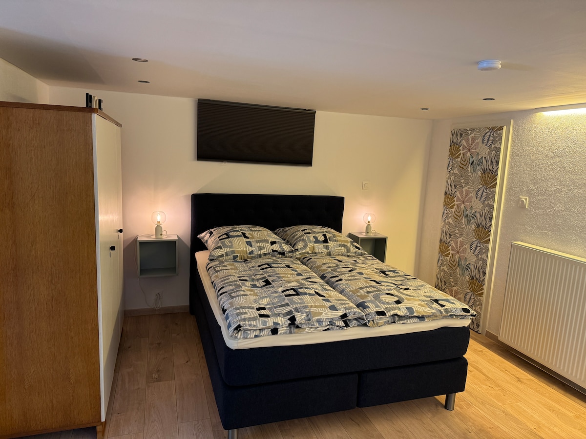 Комфортна студія в тихому селищі в 5 хвилинах від Кольмара та шосе. Студія на першому поверсі з окремим входом, приватною та закритою парковкою. Повністю обладнано; - Обладнана кухня; духовка, мікрохвильова піч, чайник, кавоварка, варильна поверхня vitro. - Ліжко; queen-size - Ванна кімната; великий душ, туалет, фен - Пральня; набір для прибирання, пральна машина, пральна машина, прасувальна дошка та праска. - Лаунж; 3-місний диван, смарт-телевізор. Надається постіль і ванна білизна.