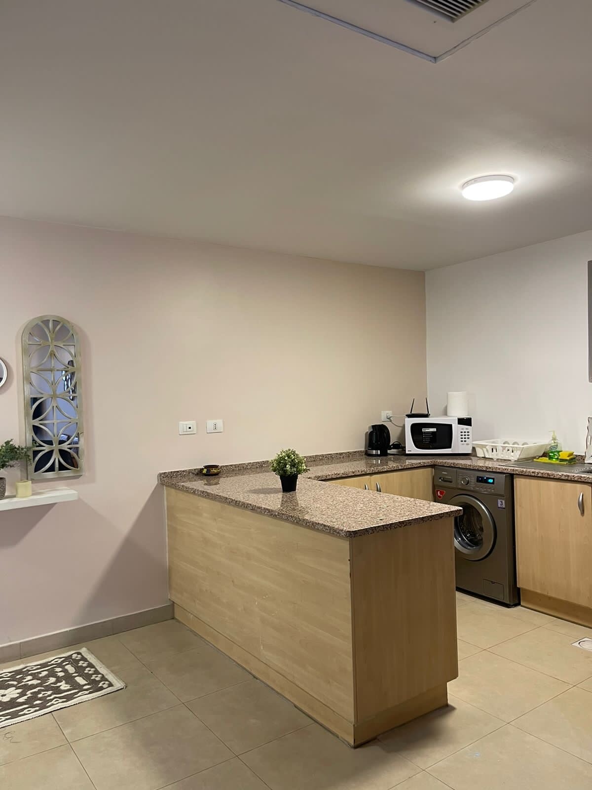 Відпочиньте в цьому унікальному та затишному місці. Усередині курорту Tala Bay Resort є 3 спальні, 3 ванні кімнати, лаунж, кухня та тераса з видом на море біля басейну, а пляж знаходиться в 15 км від центру міста та в 30 км від центру міста та в 30 км від квартири Аеропорт Кінг-Аль-Хассін. Всередині квартири є Інтернет, телевізор та сучасні кондиціонери всередині курорту є ресторани, кафе, супермаркет, аптека та дуже гарний і тихий бар