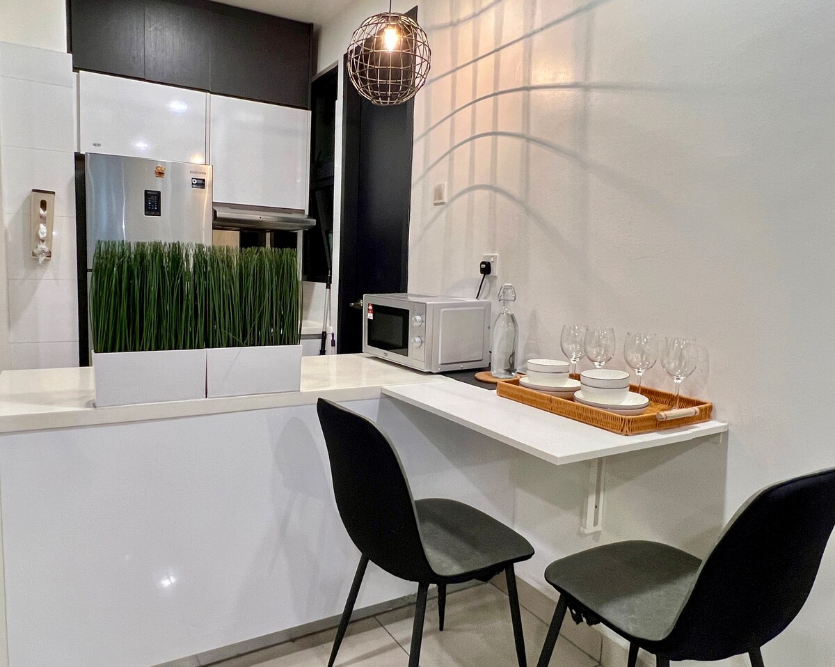 Ваше затишне місце для відпочинку від міського життя. Насолоджуйтеся помешканням із продуманим дизайном, у якому поєднуються сучасний стиль і затишний комфорт. Повністю обладнана всіма зручностями, які зроблять ваше перебування комфортним, вона ідеально підходить для коротких поїздок або тривалого перебування. ✔ 2 зручні спальні ✔ Телевізор Smart TV і динамік ✔ 2 балкони ✔ Очищувач води Coway (на вибір: гаряча, холодна та кімнатної температури) Очищувач ✔ повітря для чистого і свіжого повітря ✔ 1 визначене місце для паркування ✔️ Wi-Fi зі швидкістю 200 Мбіт/с