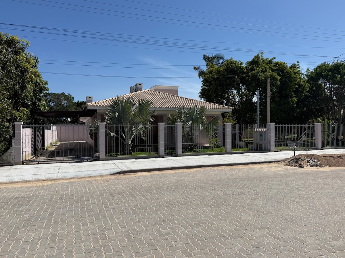 «Насолоджуйтеся комфортом і практичністю в цьому чарівному будинку в Арамбаре, одному з найкращих прісноводних пляжів у RS! Всього в 2 кварталах від пляжу є Wi-Fi, 3 спальні та може вмістити до 8 осіб (3 двоспальні ліжка та 2 односпальні ліжка), що ідеально підходить для сімей або груп друзів. Дві кімнати обладнані кондиціонером, що гарантує прохолодні та тихі ночі. Відпочиньте в зоні відпочинку з барбекю та насолоджуйтеся 2 ванними кімнатами (1 внутрішня та 1 зовнішня). Ідеальне місце для особливих моментів!»