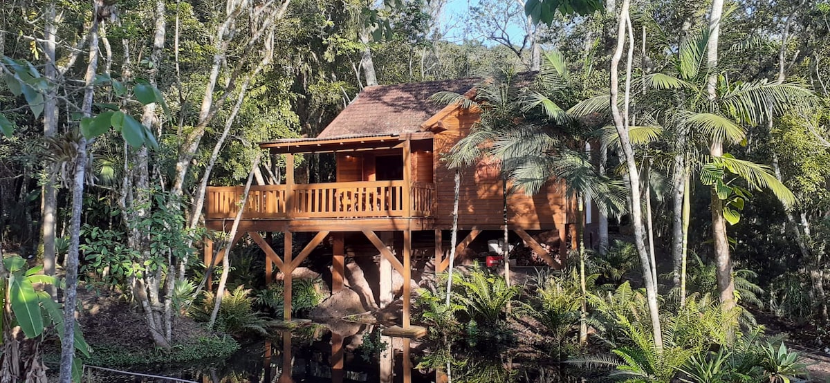 Відпочиньте в цьому тихому, стильному помешканні з видом на озеро. Повна інтеграція з природою, справжній досвід! У цьому зрубі є всі зручності для приємного та комфортного перебування. У помешканні, з сучасним декором, є повністю обладнана кухня, Wi-Fi, телевізор, диван-ліжко та ванна на відкритому повітрі. У ньому комфортно розміщується пара. Ми розташовані в сільській місцевості Ново-Гамбурго, в закритому кондомініумі, який ідеально підходить для тих, хто шукає контакту з природою, з безпекою та комфортом.