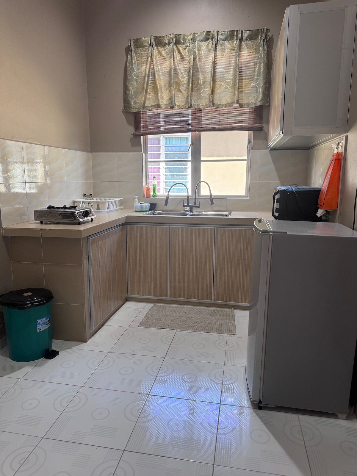 🛏️ 3 Bedrooms - Queen beds - Air conditioning - Fans 🛀 2 Bathrooms (Water Heater) - Master bedroom - 1 near kitchen 🛋️ Living Room - Sofa - 3 fans - Prepaid air conditioning (pay-as-you-use) - TV with MYTV and YouTube 🍳 Kitchen - Coway water filter - Iron and ironing board - Soap and shampoo - Dining table - Refrigerator - Oven and rice cooker - Electric stove 📶 Free WiFi 🔌 Iron and ironing board 🧼 Soap and shampoo provided 💶 Toto Set (1 Toto, 1 blanket, 1 pillow) - RM5