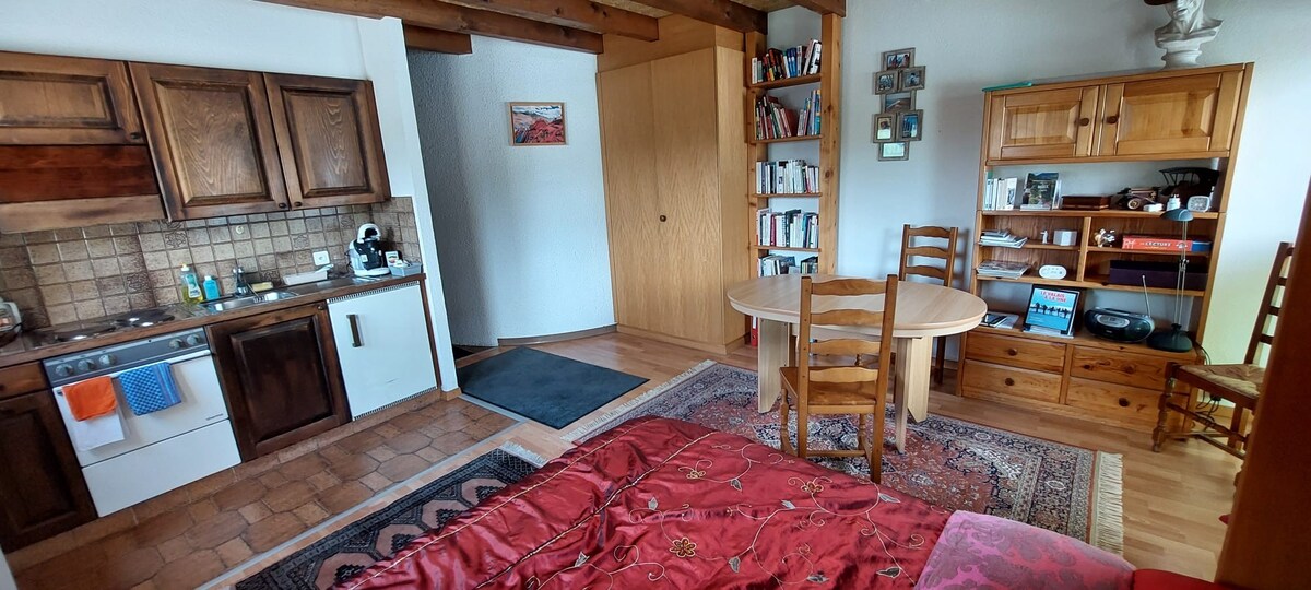 Deux pièces meublées, plain pieds, accès handicapé, cuisine moderne, situé au centre d'un petit village et à proximité de la ville (4km) stations de ski (7 et 10 km). Nombreux buts de promenades, châteaux, bisses, barrages, musées etc...