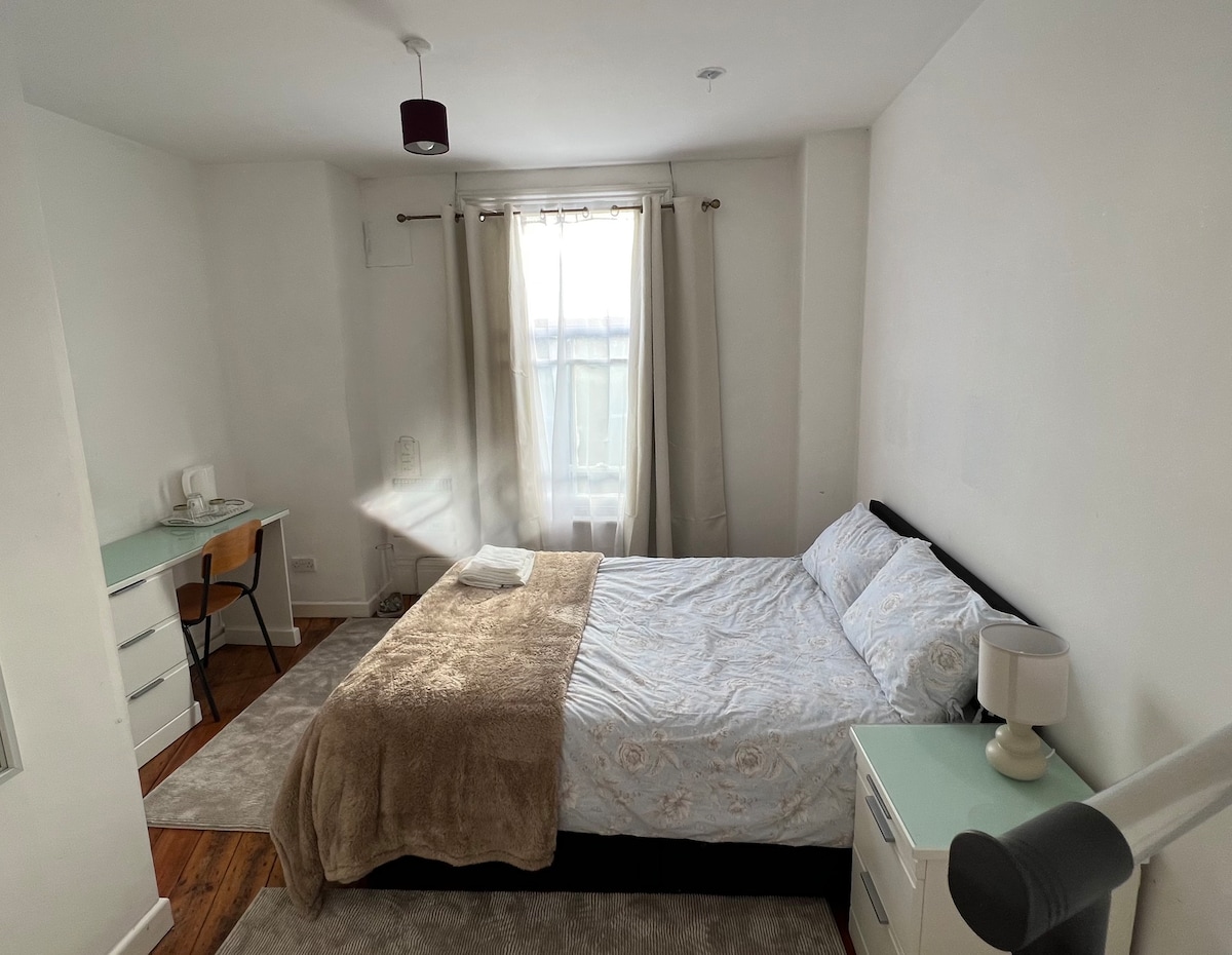 Чудова та затишна квартира з двома спальнями, садом та безкоштовною парковкою на вулиці. Зручно розташований у тихому житловому районі всього в 2 милях від центру міста з хорошим транспортним сполученням. У квартирі є все необхідне для відпочинку: ліжко розміру «king size», двоспальне ліжко та односпальний диван-ліжко, що робить її ідеальною для чотирьох дорослих і однієї дитини. Добре обладнана кухня, вітальня та їдальня зі смарт-телевізором, Wi-Fi та пральнею.