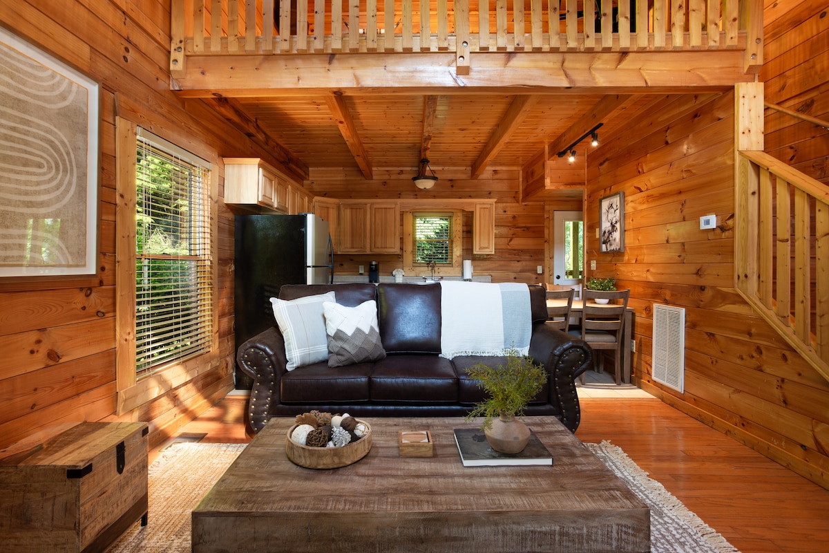 Розташований всього в 3 милях від центру Гатлінбурга. Цей реконструйований, чудовий зруб із 2 спальнями може вмістити до 6 осіб. 2 спальні з двоспальними ліжками розміру Queen size і розкладним диваном-ліжком. Нові смарт-телевізори, сучасний дерев 'яний декор та газовий камін роблять цей затишний зруб ідеальним місцем для відпочинку на вихідних, досліджуючи Смокі-Маунтінс і насолоджуючись розвагами та іграми в Pigeon Forge. Найприватніший зруб на його вулиці, цей об 'єкт оренди оточений природою.