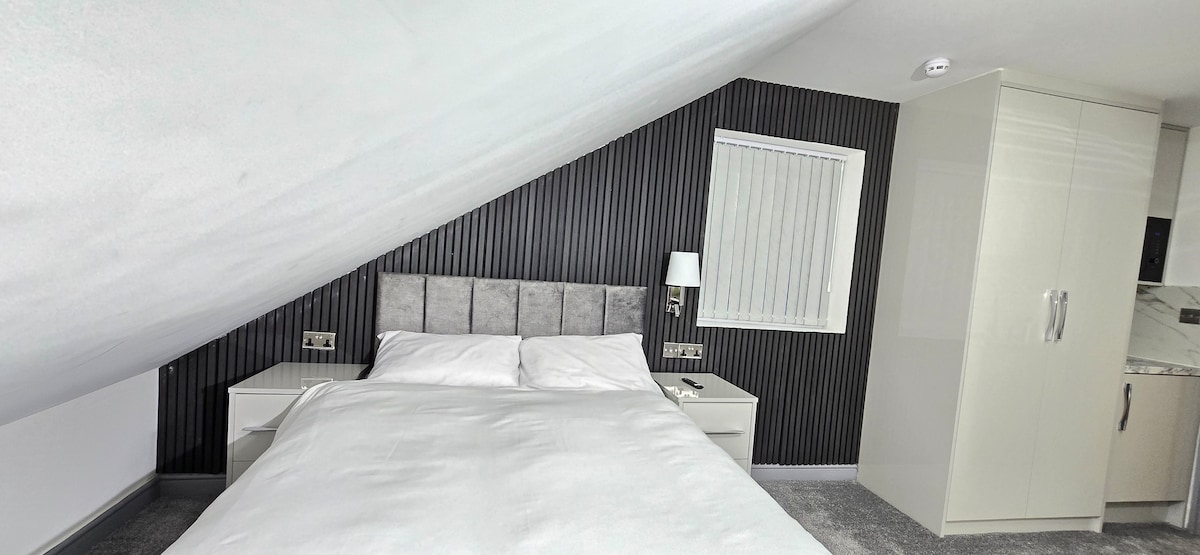 Абсолютно нова розкішна квартира з 1 ліжком і диваном-ліжком з дубовими меблями преміум-класу. Яскравий, просторий і комфортний Розташований неподалік від Emirates Old Trafford і всього в 5 хвилинах ходьби від легендарного стадіону «Манчестер Юнайтед», він пропонує чудове розташування. Крім того, за 5 хвилин пішки ви зможете дістатися до трамвайної зупинки, що забезпечує прямий доступ до жвавого центру міста. Відчуйте ідеальне поєднання історії, спорту та розваг під час вашого перебування