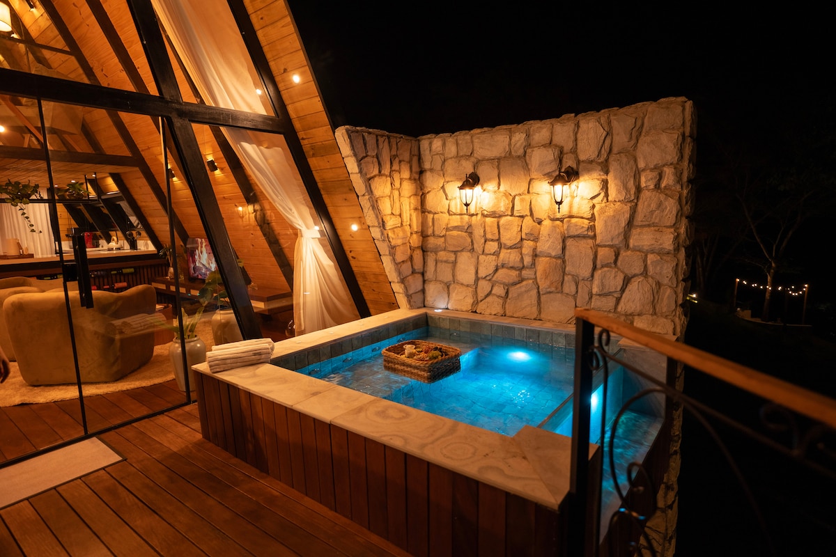 CABANAS LAGO DA COLINA слідкуйте за нашою соціальною мережею @ - Повністю обладнана кухня з видом на захід сонця; - Простір із вогнищем (включно з дровами); - джакузі з підігрівом та хромотерапією; - Алекса; - Smartv; - Вид на озеро; - Redário вивіз на палубі; - два дуби з підігрівом у зоні для купання; район - гігієнічні крани з підігрівом і душ; - Постільна білизна, халати та тапочки; - ліжко queen-size; - Redário no Jardim; - Красивий краєвид; - Скляна ванна кімната з видом на природу; - Wi-Fi.