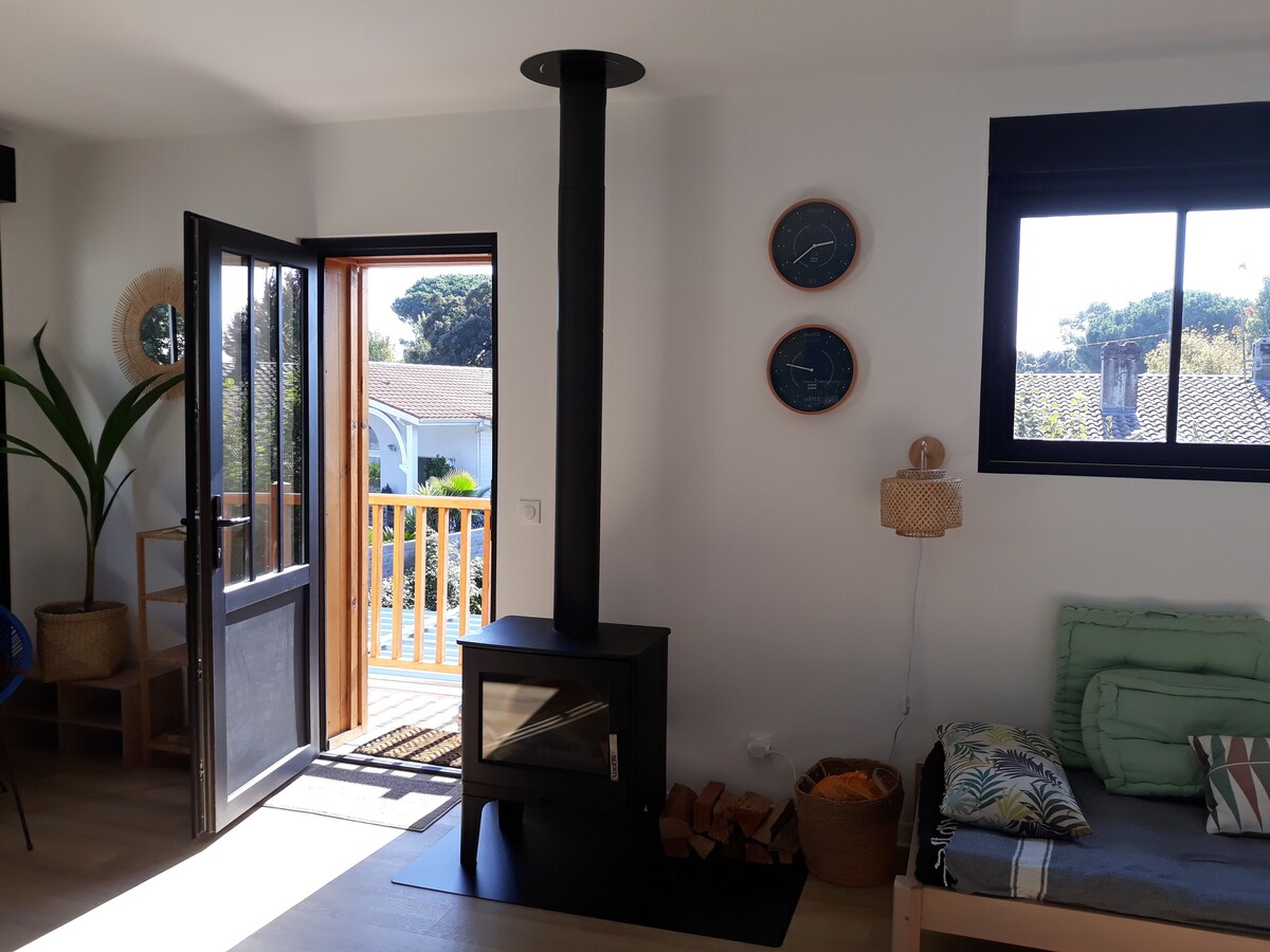 Цей симпатичний дерев 'яний будинок розташований за 200 метрів від Bassin d' Arcachon і в двох кроках від центру міста Арьє. Це дозволить вам насолодитися активами регіону: Cap Ferret, Arcachon, La dune du Pyla, Bordeaux, океанськими пляжами, Медоком і його замками... Помешкання складається з 2 рівнів: Перший поверх: - 1 досить затишний і ландшафтний сад з дерев 'яною терасою - 1 кухня відкритої плани у вітальні. - 1 спальня з ванною кімнатою - Туалет на підлозі: - 2 спальні з власною ванною кімнатою - Пральня та туалет.