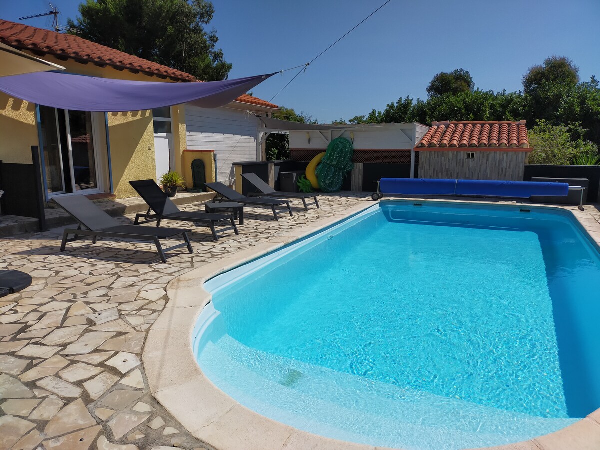 Шале Аржелес 4/6 біля приватного басейну з барбекю та пінг-понгом