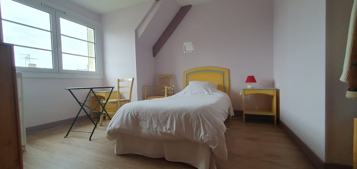 Idéal pour un séjour professionnel de plusieurs jours ou semaines, un parking gratuit devant la maison Vous aurez le 2ème étage non-fumeurs privatisé avec une chambre avec TV et wifi , kichenette, WC et salle d’eau. Les draps et les serviettes sont inclus. Au coeur du centre ville avec tous les commerces.