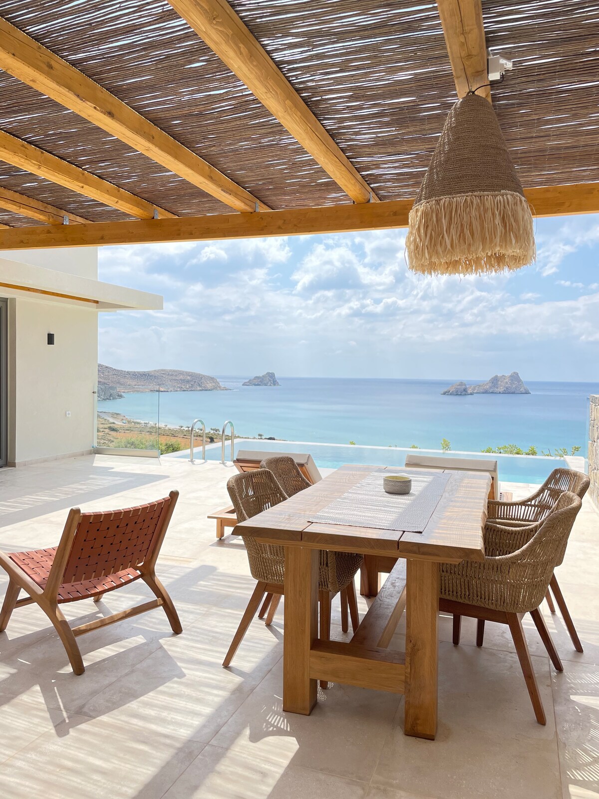 Гостьовий дім Madalin – відпочинок у стилі бохо над Критським морем Гостьовий будинок Madalin, розташований на тихому схилі гори, пропонує спокійний відпочинок в оточенні дикої природи та панорамного виду на море. Вийдіть на власну терасу і насолодіться панорамним краєвидом оливкових гаїв, середземноморського лісу, драматичних скель і глибокого блакитного простору Критського моря. Незалежно від того, чи ви тут, щоб відпочити, дослідити нові місця чи просто подихати свіжим повітрям, Мадалін – ваш рай на сході Криту.