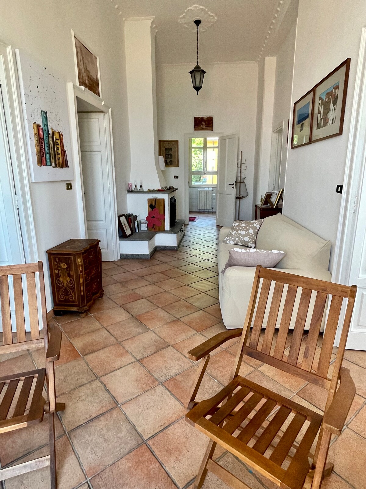 L'appartamento si trova nella piazza principale del paese, in un palazzo storico. È stato ristrutturato nella primavera del 2018. È composto da una sala pranzo con angolo cottura, divano e televisore; una stanza da letto matrimoniale e un bagno in camera completo di box doccia. È dotato di impianto autonomo di riscaldamento e di condizionatore. È a disposizione degli ospiti la rete Wi-Fi. rivieradegliangeli