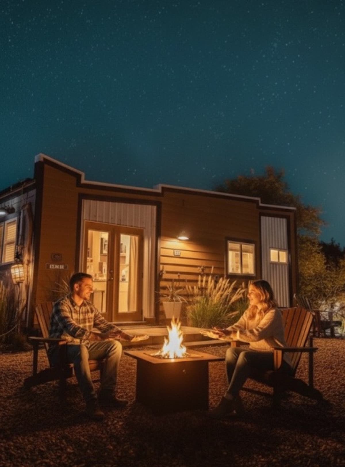 This modern tiny home offers two queen sized sleeping areas including one in the loft, a dedicated work space and kitchen. Dream showcases double french doors, which illuminates custom works from local artists. Sustainable-by-design, this award-winning home is fully solar, promoting energy conservation. Located steps from the fire pit, BBQ area, outdoor spa with hot tubs, cold plunge and sauna, and Old Town Cottonwood. Dream is the perfect way to start your next adventure to Cottonwood/Sedona!