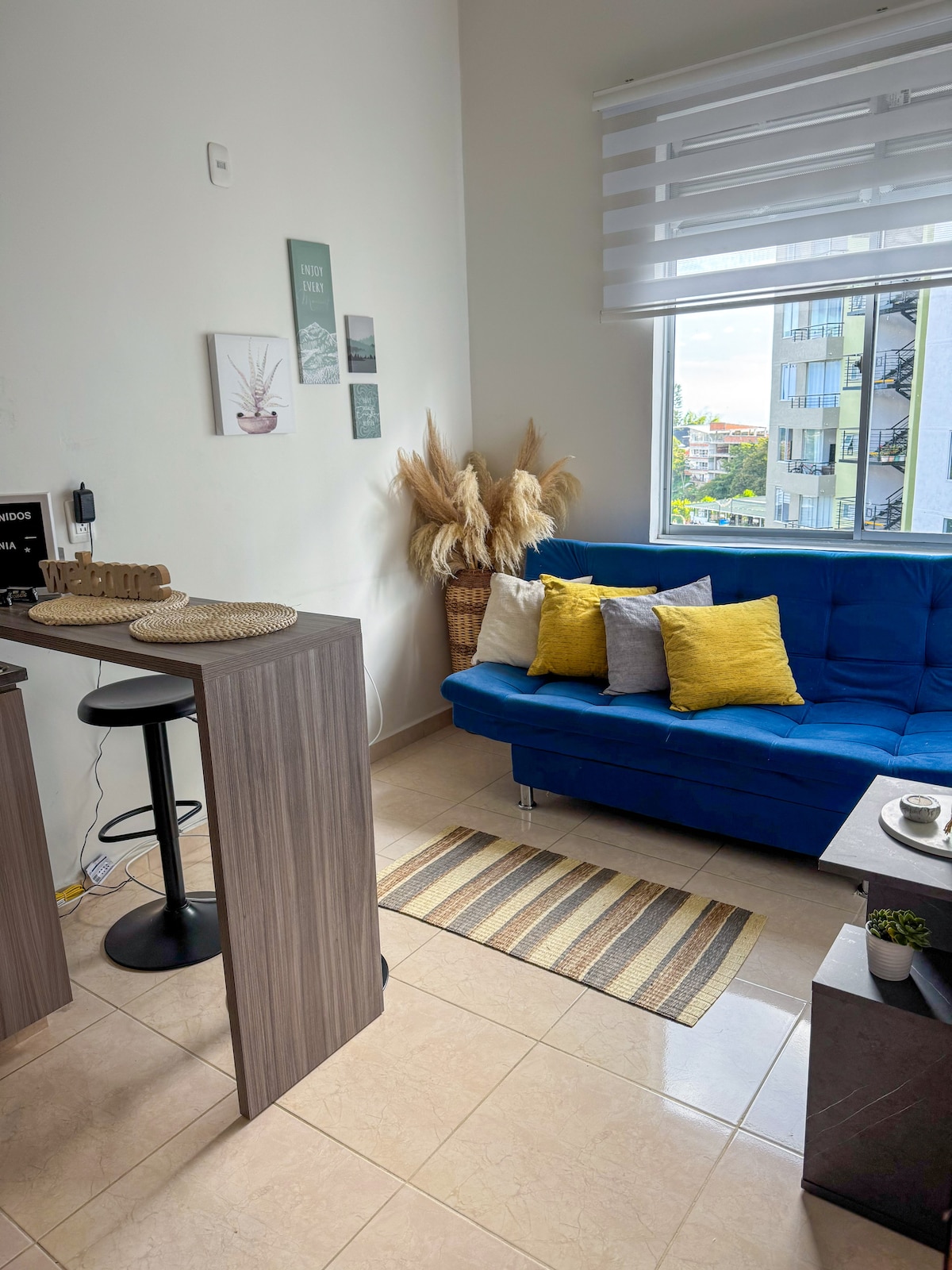 Затишний лофт у будівлі Сохо - в районі Кастеллана. Насолоджуйтеся тихим і освітленим простором, недалеко від супермаркетів, торгових центрів, клінік та гастрономічного району в місті Вірменія. У номері є простора кімната, повністю обладнана кухня, пральна машина, гаряча вода, 300 швабр Wi-Fi, Smart TV та чудовий вид на гори. У будівлі є цілодобовий консьєрж, ліфт, супермаркет, відкрита парковка. Реєстраційний номер 217986