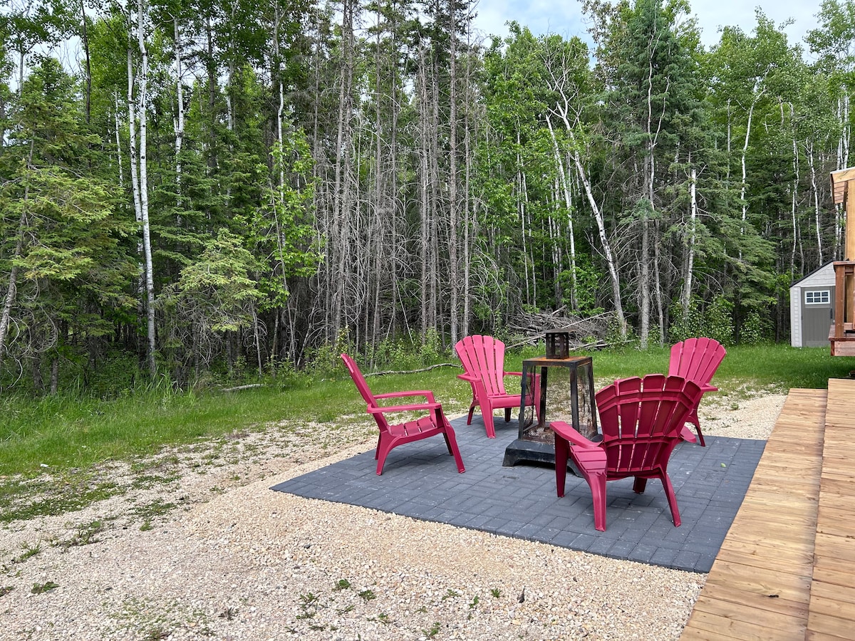 Ліс - це ваш усамітнений, чарівний відпочинок на 80 акрах приватного лісу. Близько (не надто близько) до Гімлі, Манітоби по довгій приватній дорозі. Чекаємо на вас, щоб відновитися та від 'єднатися, насолодитися терасами, прогулятися стежками або ознайомитися з лікувальними ліками. Розташована в бореальному лісі ялини та осикового бореального лісу, дров 'яна піч, гамаки, чаші для багаття, пішохідні стежки, ставок для плавання, снігоступи. І колекція вінілів. І, як сказав Джон Прайн, ми викинули телевізор.