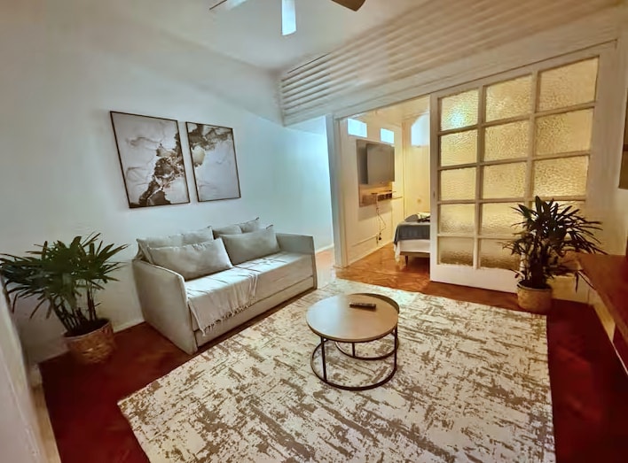 Stay in a space tested and approved by several guests! Beautifully decorated, spacious apartment (45m²), quiet (back). Separate bedroom and living room, with air conditioning in both areas. Equipped kitchen. Unbeatable location - Just 150m from Copacabana Beach - 500m from Arpoador Beach - 600m from Ipanema Beach - Next to Copacabana Fort and the famous Arpoador sunset - Surrounded by bars, restaurants, markets and all kinds of shops Satisfaction guaranteed. Book now.