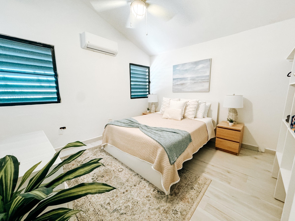 Зручне та добре обладнане помешкання з двома спальнями, кожна з яких має кондиціонер та повнорозмірне ліжко. У помешканні є одна повністю обладнана ванна кімната, повністю обладнана кухня, сімейна кімната з телевізором і Wi-Fi, а також пральня для додаткової зручності. Ідеально розташований поблизу центру міста Гуаяма, з легким доступом до торгових центрів, місцевих магазинів, полів для гольфу, пляжів, набережної та ресторанів. Практичний і затишний простір, створений для того, щоб ви почувалися як удома під час вашого перебування.