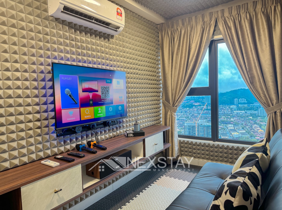 StarSuiteAC – Luxury Stay Above the Clouds! A luxuriously designed duplex on high floor, offering a breathtaking cloud-carpet view of the KL skyline. Relax under the galaxy-like starry ceiling and experience a staycation like no other! Enjoy a soundproof karaoke room, billiard & air hockey, and a home cinema with surround sound for a true movie experience. Facilities : kitchen, fridge, microwave, rice cooker, air-fryer, water filter, washing machine (with dryer), massage chair, etc.