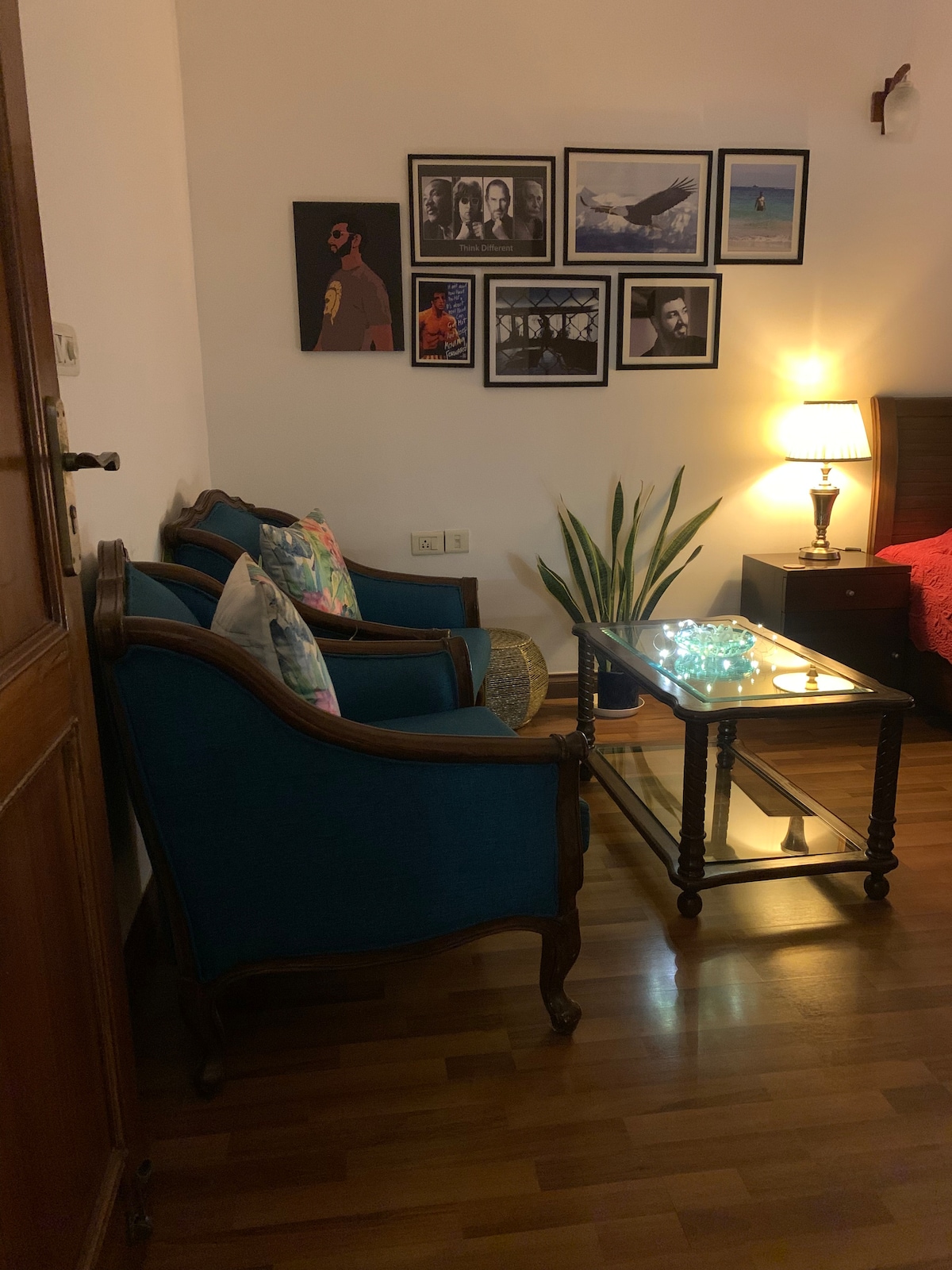 Хочете зв 'язатися з сім' єю, друзями або колегами на колінах природи в Нью-Делі? Бажаєте відчути ідеальне поєднання чарівності старого світу та гостинності з усіма сучасними зручностями? Бажаєте прогулятися в просторих газонах під фруктовими деревами або чекати на павичів? Якщо ТАК, то ця незалежна 3-кімнатна квартира на віллі Shiv Niwas з окремими балконами та терасою на даху, смарт-замками, високошвидкісним Wi-Fi на території помешкання, безкоштовною парковкою та турботливими ДОГЛЯДАЛЬНИКАМИ!
