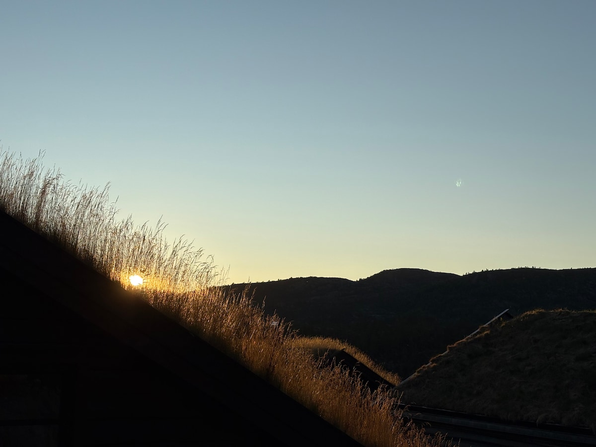 Затишний повністю обладнаний сімейний зруб із 3 спальнями, спільною вітальнею/кухнею та ванною кімнатою. Добре підходить для великої сім 'ї, але також може розмістити двох малюків. Wi-Fi, електроенергія, вода та дрова. Насолоджуйтеся сонцем і насолоджуйтеся краєвидом із чашки кави вранці з великої веранди. Відкрийте для себе гірські пейзажі з доріжками вздовж водоспаду, які приведуть вас на вершину з видом на Ереватн з його довгим неглибоким узбережжям на Ск 'єрці. Можливості для купання та риболовлі. Взимку в кількох кроках розташований популярний альпійський курорт.