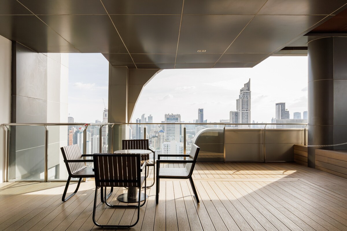 Однокімнатна квартира в центрі міста B1D/Поруч із метро/Вид на місто з висоти/Бізнес-район Сіам/Безкоштовний трансфер до аеропорту/Відкритий басейн/Фітнес/Бар на даху/Трансфер з аеропорту та назад на чотири ночі