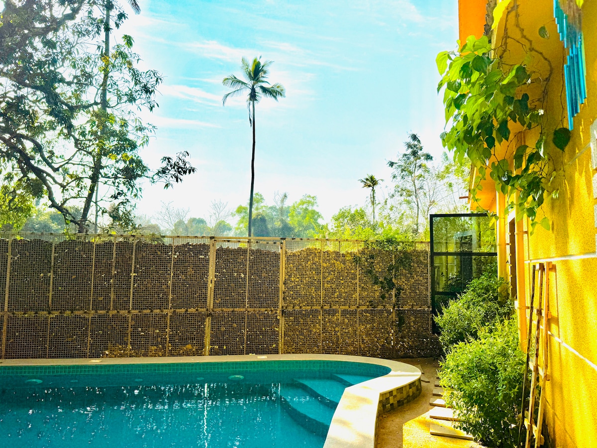 Спокійна вілла 3BHK із приватним басейном біля пляжу Анджуна.