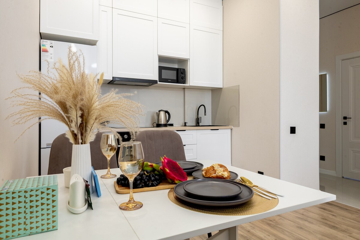 Шановні гості Ми раді запропонувати вам можливість відпочити в комфорті та почуватися як удома. Кожна з квартир оформлена в єдиному стильному дизайні, що створює гармонійну атмосферу та відчуття спокою для наших гостей. Для вашої зручності в квартирі є все необхідне: повністю обладнана кухня для приготування улюблених страв, високошвидкісний WI-FI та СМАРТ-ТЕЛЕВІЗОР для розваг та роботи. Сподіваємося, що ваше перебування у нас принесе лише позитивні емоції!