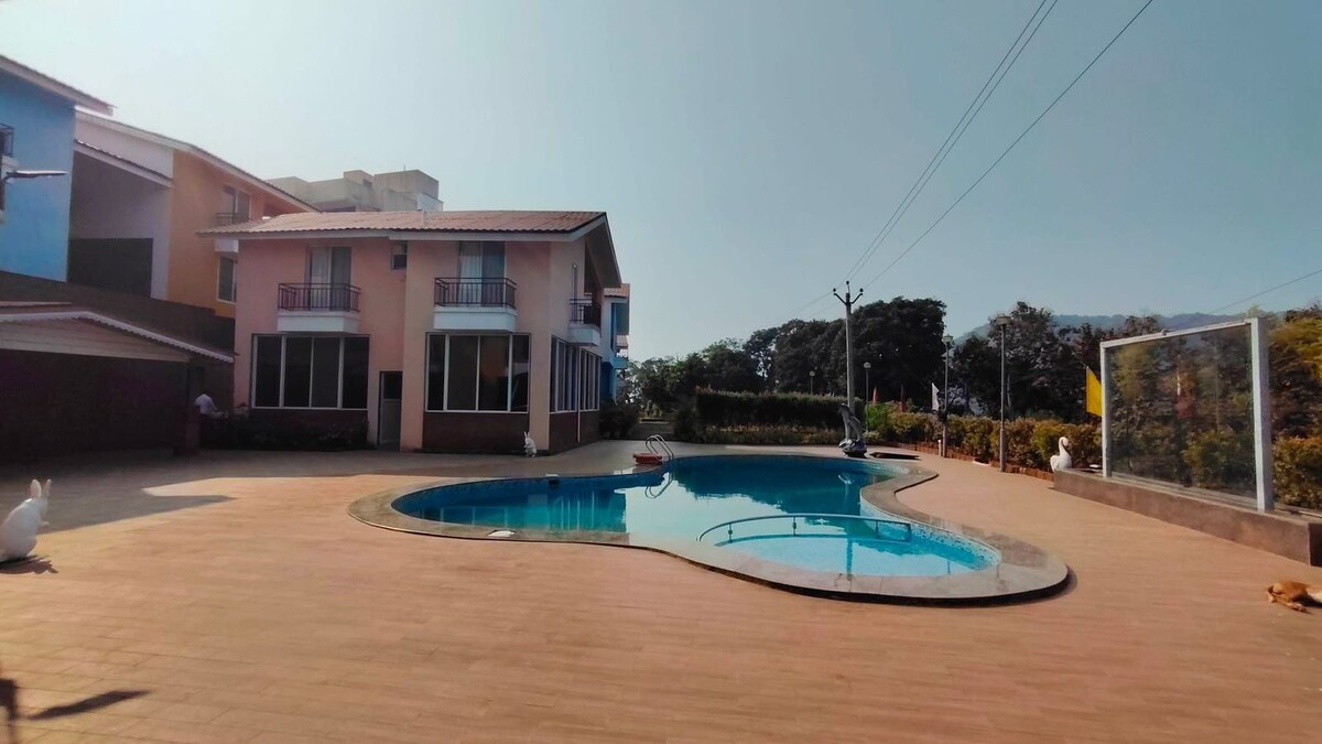 Відпочиньте в The Farm House at Kings Village – затишному котеджі з двома спальнями, розташованому на пагорбах Конкана. Насолодіться широкими верандами, приватним басейном, великим басейном і більярдним столом. Наші кухарі готують свіжі страви на замовлення. Прогуляйтеся стежками або вирушайте на пляж Даполі – це ідеальне місце для відпочинку в сільській місцевості з родиною або друзями. Приїжджайте до нас і відчуйте спокій життя в горах – свіже повітря, смачна їжа, зоряні ночі та тиша, яка заряджає душу