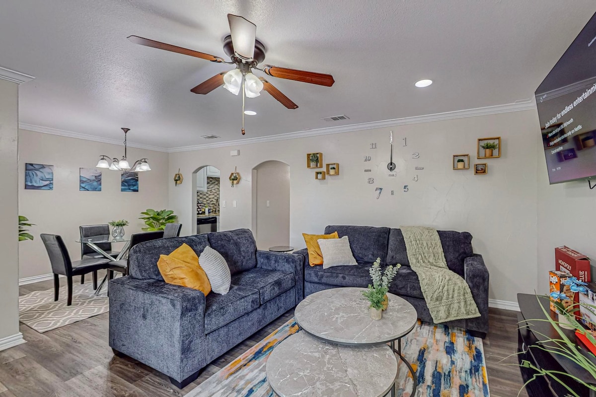 Ця затишна та стильна квартира - ваша ідеальна база для вивчення Арлінгтона. Незалежно від того, чи ви тут для бізнесу, чи для задоволення, ви будете зручно розташовані поблизу основних пам 'яток, таких як стадіон AT&T, Globe Life Field та Six Flags Over Texas. Завдяки зручним ліжкам, швидкісному Wi-Fi та повністю обладнаній кухні ви матимете все необхідне для продуктивної робочої поїздки або спокійного відпочинку. Забронюйте зараз і насолоджуйтеся найкращими побажаннями в Арлінгтоні. *Надішліть запит на оренду автомобіля.