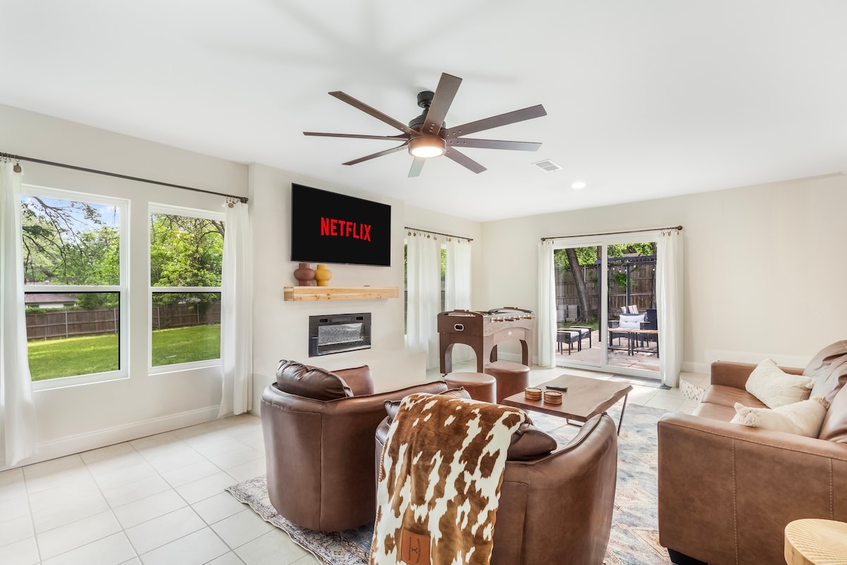 What you’ll ❤️ about your stay: - Centrally-located in the heart of Arlington - Within minutes of AT&T Stadium, Texas LIVE, Globe Life Field, Six Flags, Hurricane Harbor, University of Texas at Arlington, Billy Bob's of TX, Famous Stockyards of Fort Worth, & DFW Airport - 19 min walk to AT&T Stadium - Walking distance to shops, restaurants, & bars - Fire Pit/Grill/Outdoor Dining - Fully equipped Kitchen (pods/coffee provided) - High Speed Internet - (3) Smart TVs - Full-Size Washer & Dryer