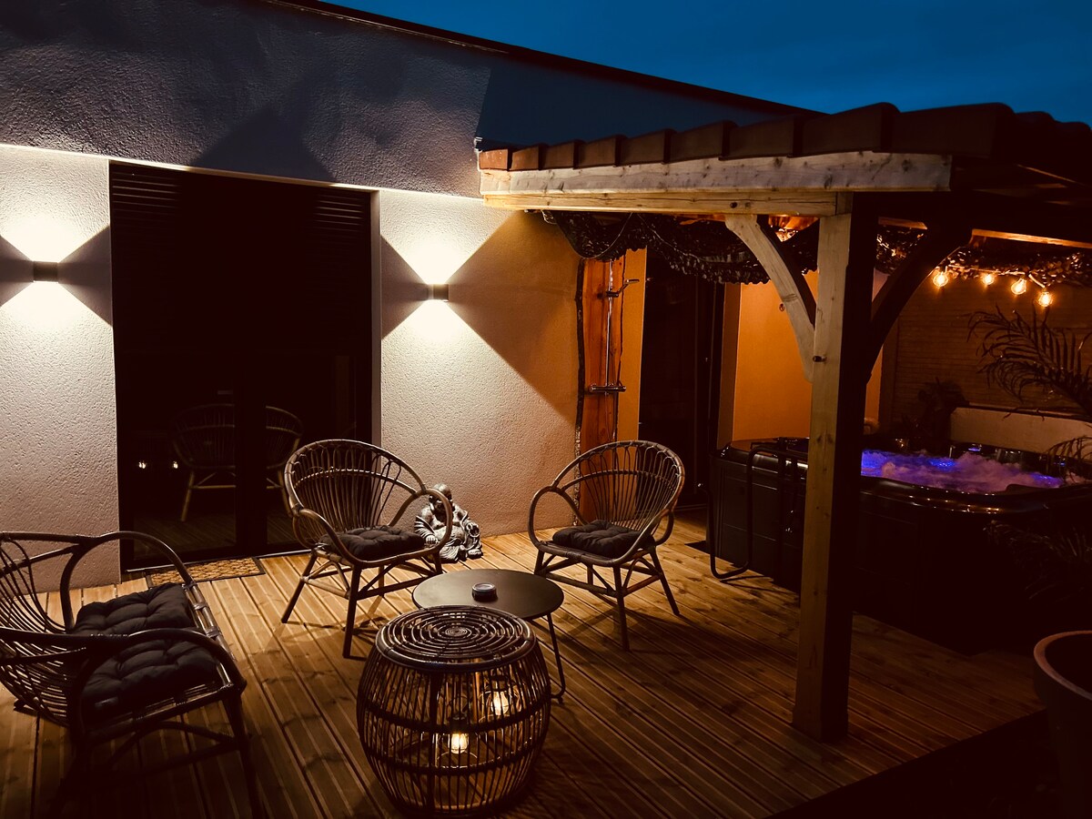 Tarif professionnel possible : 80€/nuit du dimanche au jeudi sans spa. Venez vous ressourcer dans notre gîte chaleureux, conçu pour accueillir jusqu’à 4 voyageurs. Entièrement équipé, il offre tout le confort nécessaire pour un séjour detente. Profitez d’un spa privatif, abrité du vent et de la pluie, chauffé jusqu’à 40° pour des instants de détente en toutes saisons. Le spa est au pied de la porte 🚪 Atmosphère cocooning, ambiance sereine et cadre reposant, prenez soin de vous ! 😇