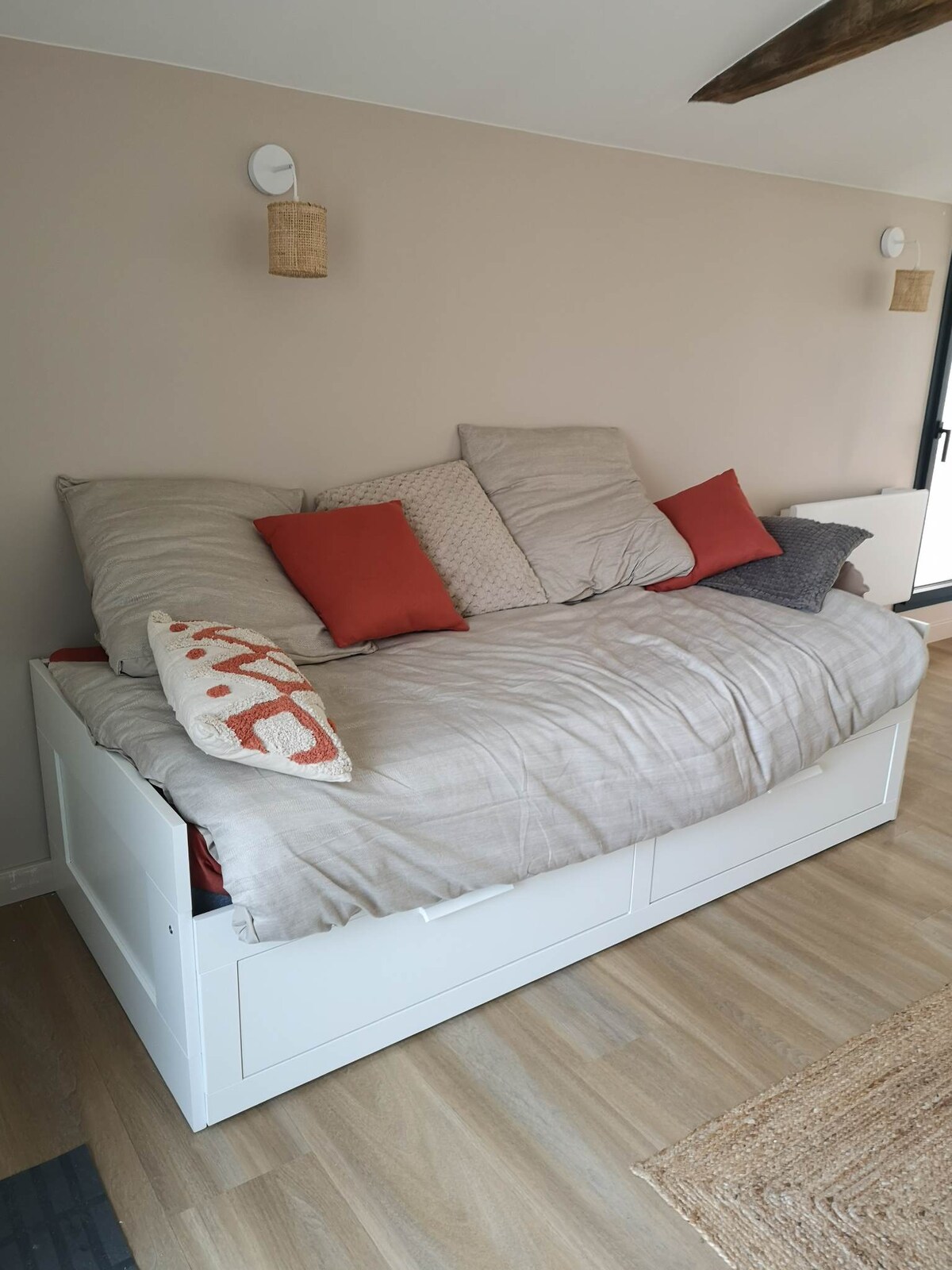 Комфорт і спокій на лоні природи. Ми будемо раді вітати вас у просторій студії площею 27 м2, що примикає до нового будинку, у помешканні, у сільській місцевості. Складаючи вітальню зі зручним диваном, а також кухню, ви маєте доступ до спальні з телевізором та ванною кімнатою. > НОВИЙ матрац з твердою підтримкою товщиною 23 см (березень 2025 р.) > Введення в експлуатацію реверсивного кондиціонера в грудні 2025 року > Безкоштовний доступ до телеканалу Canal+ у спальні