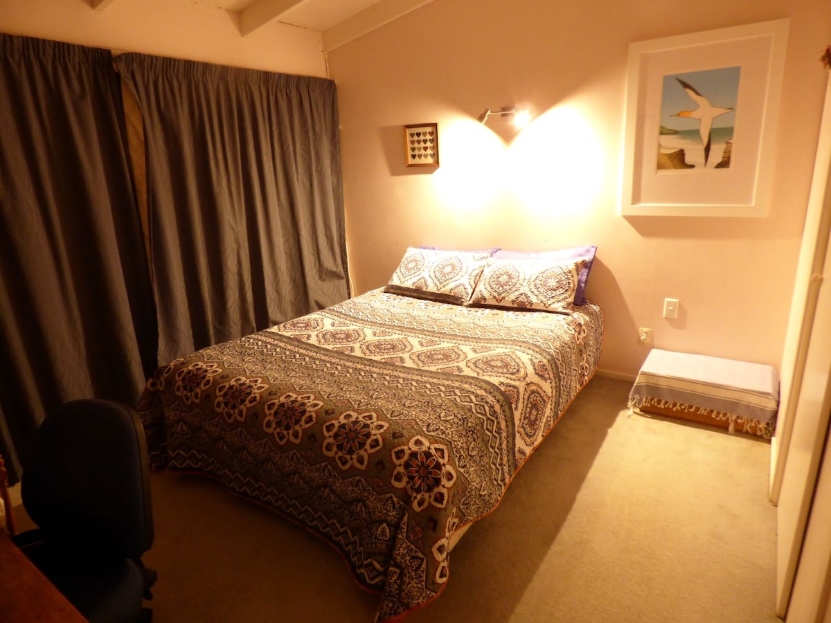 Step into this cosy, stylish studio tucked away in native bush. Close the door and switch off from the world… except for the gentle sounds of local birdlife, fantails, tūī and kererū Start your day with a coffee or wind down with a glass of wine on your private deck. Kick back on the couch with a good book or catch up on your favourite shows — this space is all about relaxing your way. Your peaceful getaway, designed with calm in mind. Plus, safe off-street parking for two vehicles.