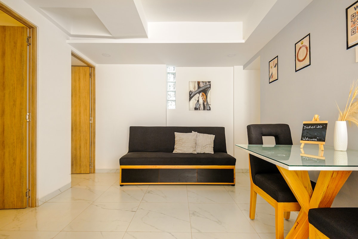 Ідеально підходить для того, щоб відчути яскравість одного з найбажаніших районів Мехіко, Колонія Рома - в декількох кроках від найкрутіших місцевих місць, включаючи ресторани, бари, бутики, магазини та культурні пам 'ятки. Ця стильна квартира з однією спальнею пропонує розкіш і комфорт із високими стелями, достатньою кількістю природного освітлення та сучасними меблями. До послуг гостей відкрита вітальня, приватна тераса та спокійна спальня з двоспальним ліжком і робочим місцем.