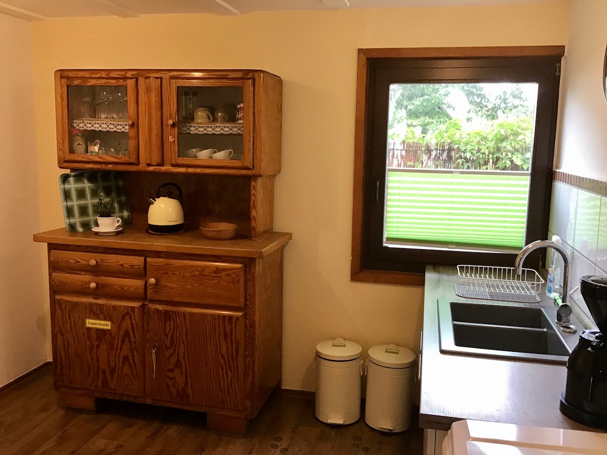 Гостьовий будинок (близько 20 квадратних метрів), щоб закохатися в Alte Forstamt Sinntal. (Крім того, 50 кв. м/ 3 особи: НОВІ апартаменти Altes Forstamt Sinntal) Цінне обладнання з підігрівом підлоги, кишеньковим пружинним матрацом + люблячі деталі, такі як індір. Освітлення, створення гарного клімату Ейг. Сад з терасою + гриль. Traumh. Переглянуті стежки в Рьоні + Шпесарте 1 домашній улюбленець Красиві спа-салони + гірськолижні курорти поблизу Найкраща велосипедна мережа, наприклад, Rhönexpr.Bahnradweg, R2 Природна ванна, прогулянки, риболовля нахлистом