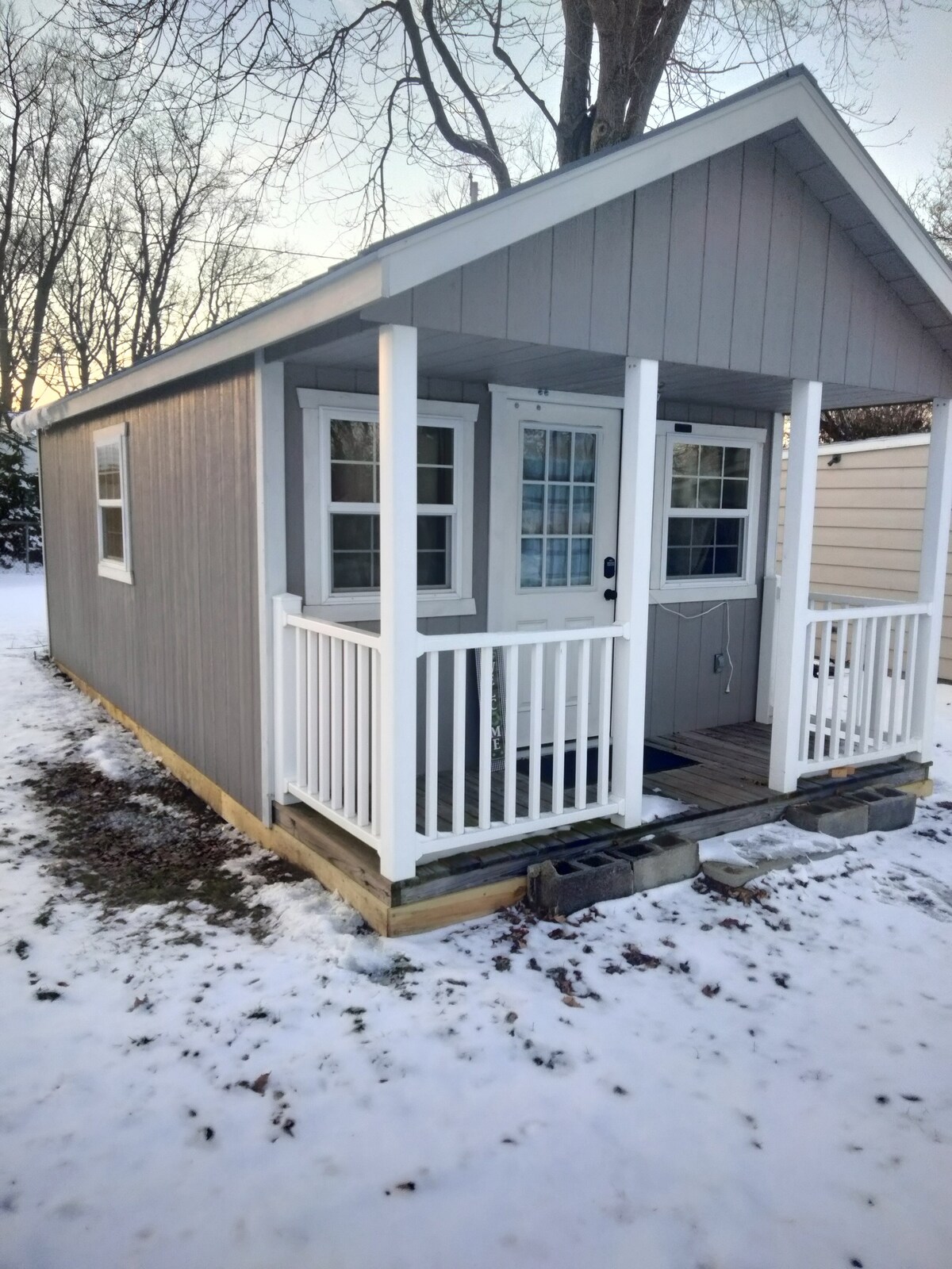 Відпочиньте у цій затишній заміській гаражі в долині Гранд-Рівер. Перша зупинка на екскурсії виноробнею знаходиться всього в 4 хвилинах ходьби, а ще понад 30 хвилин. Відвідайте озеро Ері, Томпсон-Леджес, обсерваторія Geauga Park District або критий міст. Міні-кухня з міні-холодильником, мікрохвильова піч, Keurig і раковина. Приваблива ванна з душем Приватний ключ-код Вхід Електричний камін Ліжко розміру «Сільські дерев 'яні рокери та стіл» Можна з домашніми тваринами: спільний доступ до гідромасажної ванни, вогнища на задньому подвір 'ї та патіо