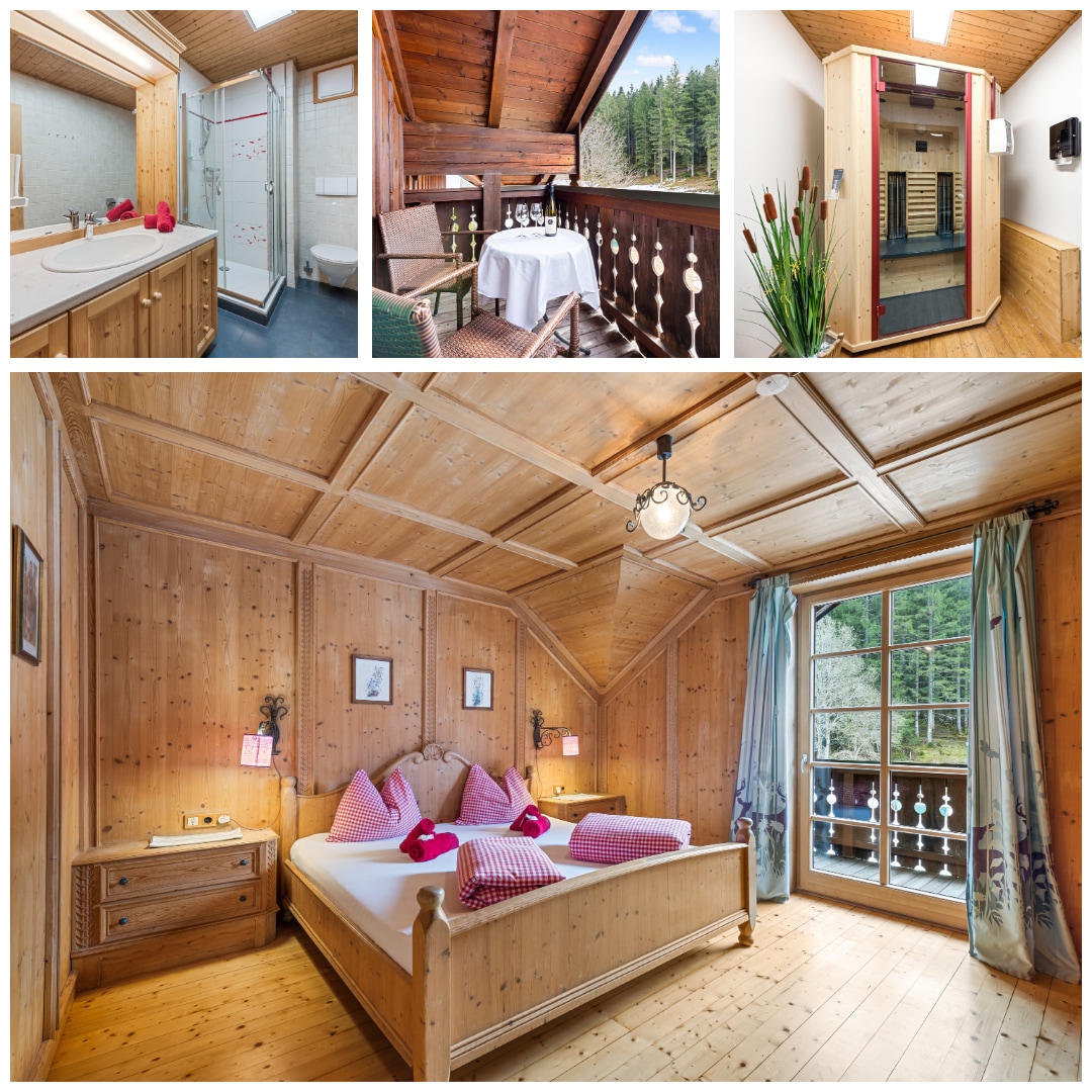Просторі двомісні номери також можуть бути зайняті для 3-4 осіб і мають такі зручності: – Розкладний диван - телевізор з плоским екраном; – велика ванна кімната з душем, туалетом, феном, рушниками для рук та душу; – Паркетна підлога - Розширений сніданок подається до столу. - Вид на сад і гірський ландшафт. - Безкоштовний Wi-Fi скрізь - Безкоштовна парковка. - Ресторан із сезонною штирійсько-каринтською кухнею та піцою на дровах; - Сауна та гідромасажна ванна.