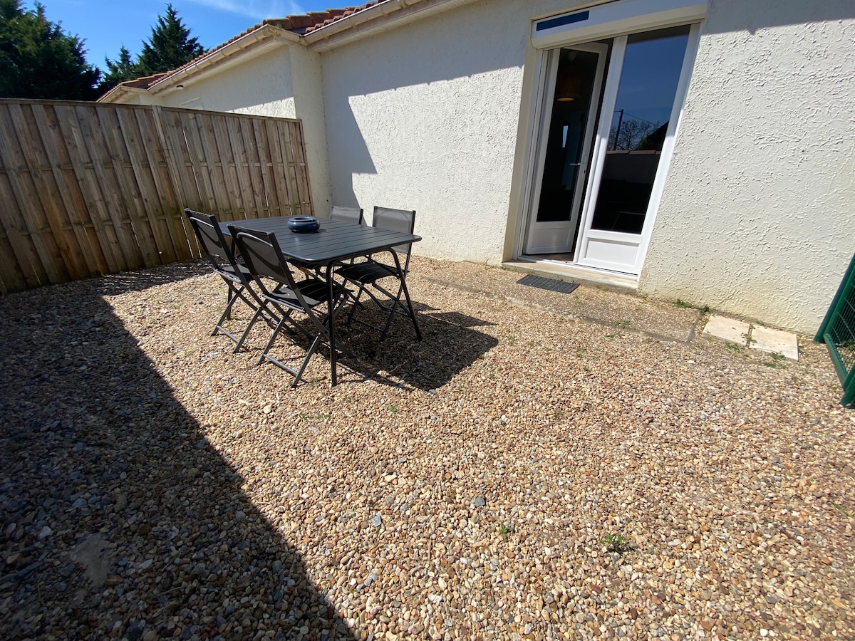 Плата за прибирання 30 € необов 'язково: див. розділ «Помешкання» Світлий, чистий і просторий будинок площею 45 кв. м з кухнею, верхнім холодильником, плитою, мікрохвильовою піччю, вітальнею + телевізором - 1 ліжко 160x200, душова кабіна та туалет - 1 спальня з 2 ліжками 80x200 - Приватний захищений паркінг. - Можливість наявності парасолькового ліжка та інших дитячих аксесуарів. - Автономне помешкання - Вхід із дверним кодом - Можливе пізнє прибуття Помешкання недоступне для людей з обмеженими можливостями.