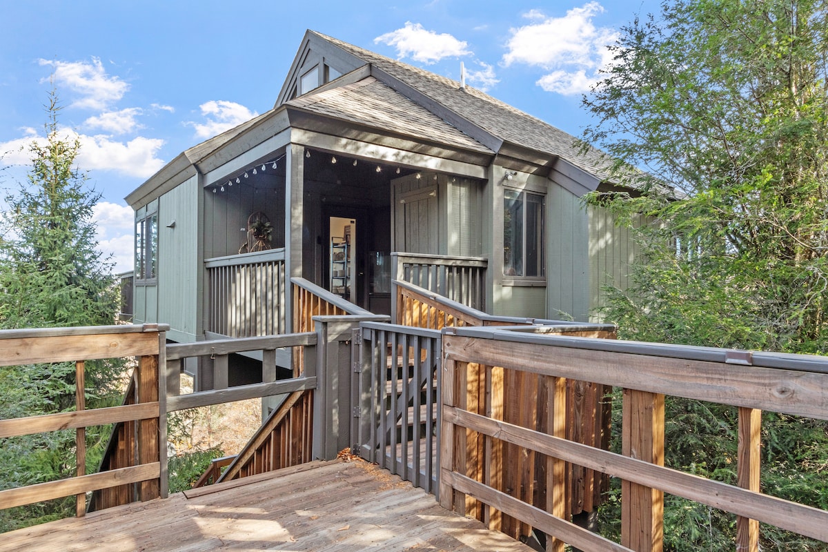 Насолоджуйтеся відпочинком у горах на висоті 3700 футів із курортними зручностями. Цей затишний будинок із 2 ліжками та 2 ванними кімнатами пропонує спокійну обстановку, що межує з захищеною територією. Усередині ви знайдете газове опалення, щоб зберегти тепло, повністю обладнану їжу на кухні з великим столом для дистанційної роботи та роздільною спальнею. Ден має розсувні двері на криту терасу. Насолоджуйтеся задньою критою терасою зі столом і стільцями в патіо, грилем і лісовим краєвидом. Зручності спільноти: сезонний басейн, пляж/озеро, поле для гольфу, ігрова кімната, річка, стежки.
