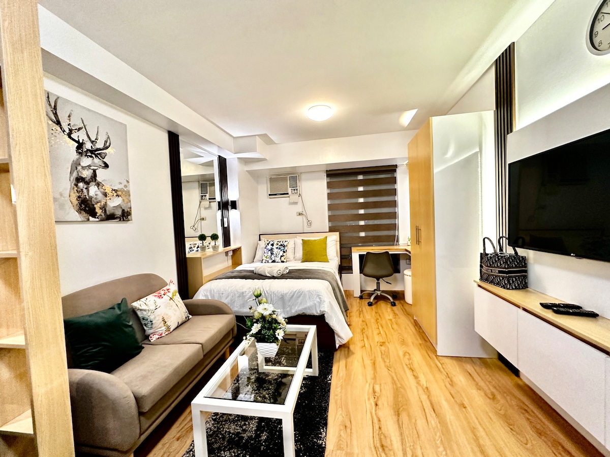 - Newly renovated cozy modern Studio unit in Avida Towers Cebu, IT Park, with great view of Sugbo Mercado from the window just across the street. - Can accommodate up to 4 Guests. 1 double size bed and 1 double size sofabed - Fast Internet speed up to 250Mpbs ++ in Fibre Optic connection - 43" Smart TV with Netflix, Disney+, Amazon Prime, YouTube and more - Walking distance to Ayala Central Bloc - Plenty of Restaurants, Convenient store, Sports Bars, Coffee shops and more just around the corner