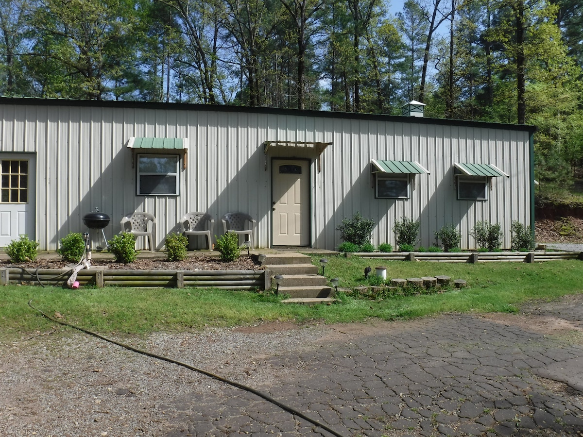This cabin is semi-private and quiet for couples and friends, child friendly. Easily accessed from a state highway and only four miles from town. You will find a fun experience in the country. Stroll through the gardens or walk in the woods. Relax on the porch or by the fire pit. There is a charcoal grill, mini frig, microwave, and coffee pot, not a full kitchen. Arrangements can be made to enjoy a delicious farmhouse breakfast or steak dinner for two. (request at time of booking)