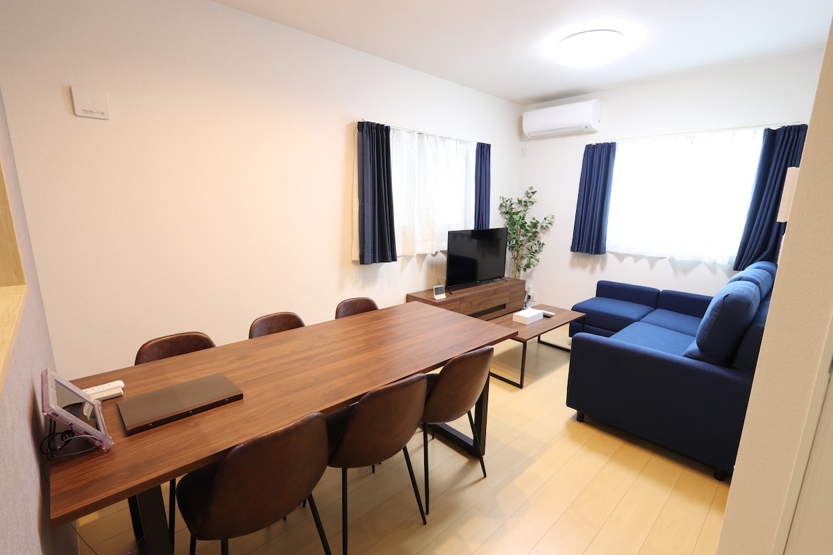 2-story terrace house, 5 min. by train from Shin-Osaka station. 2 bedrooms/9 people/1 bathroom/2 toilets. 1 minute walk to pay parking lot. 3 minutes walk to Awaji station. Direct access to Osaka Umeda, Nihonbashi and Kyoto. All daily necessities are available. High speed Wi-Fi. ~ Thank you ~ We have a 57㎡ room for rent just 3 minutes walk from the terminal station. It has a living/dining room, 2 bedrooms, 3 beds, and 3 sofa beds, 2 toilets, and is ideal for long-term stays.
