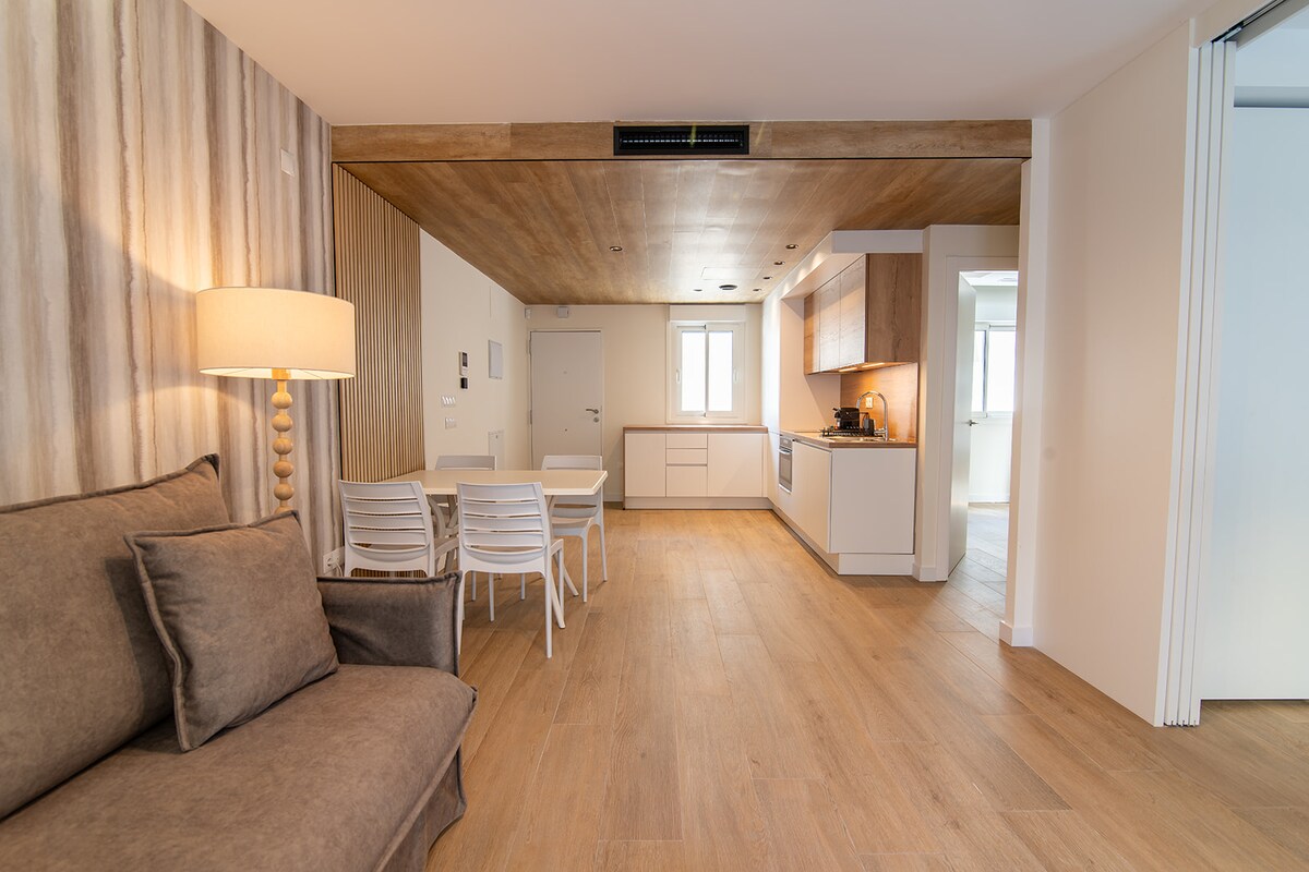This exterior apartment, ideal for 4 guests, inspired by the light, coastline, and southern breeze of Cádiz. Its design pays tribute to the city’s white architecture, open patios, and subtle maritime touches reminiscent of the Bay of Cádiz. Bright, fresh, and relaxing, the space includes a cozy bedroom, private bathroom, fully equipped kitchen, and a dining area for your comfort.