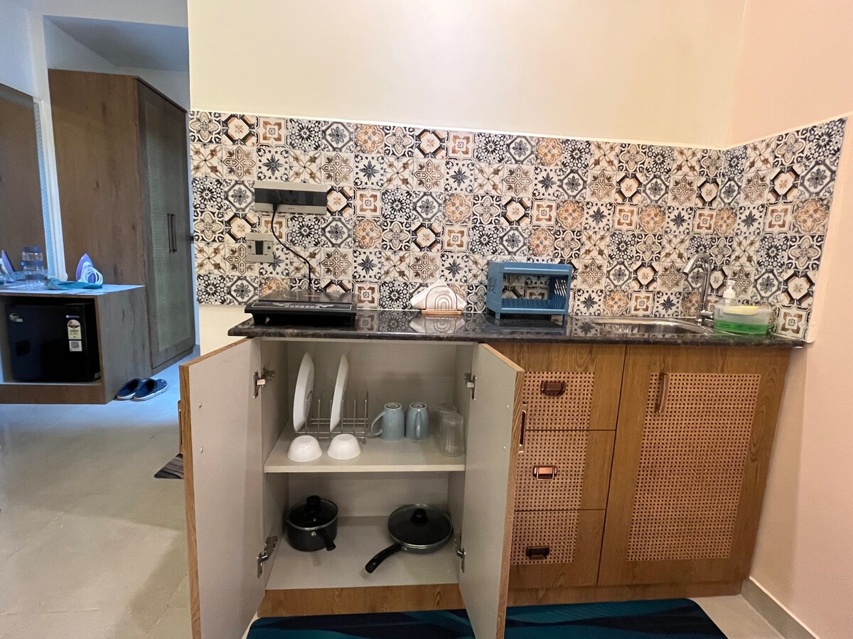 Відкрийте для себе висококласне життя в цій повністю мебльованій квартирі-студії, ідеально розташованій в omaxe hazratganj. Розташована всього в 20 хвилинах їзди від аеропорту в 5 хвилинах їзди від стадіону Ekana, торгового центру Phoenix Palassio Mall та будівлі штаб-квартири поліції. Розважайтеся всією сім 'єю в цьому стильному помешканні. Вона складається з кімнати з унікальним балконом і суміжною ванною кімнатою. Це схоже на готельний номер . У ньому є невеликий холодильник і чайник. Це дружелюбне помешкання для пари, і місцеве посвідчення особи є прийнятним.