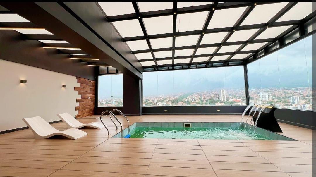 ✨ Vive una experiencia única en este elegante espacio, ubicado a pasos del 🌳 Parque Fidel Anze, en una de las zonas más exclusivas de Cochabamba. 🌄 Relájate con vistas a la ciudad 🌆 y las montañas ⛰️ desde un entorno tranquilo y rodeado de naturaleza 🍃. 💦 Disfruta de piscina y terraza ajardinada 🌺 con áreas verdes 🌴 que brindan un respiro en medio de la ciudad. 📍 Cerca del Sombrero de Chola 🎩, centro comerciales🛍️bares, discotecas y la mejor oferta gastronómica 🍽️ de la ciudad.