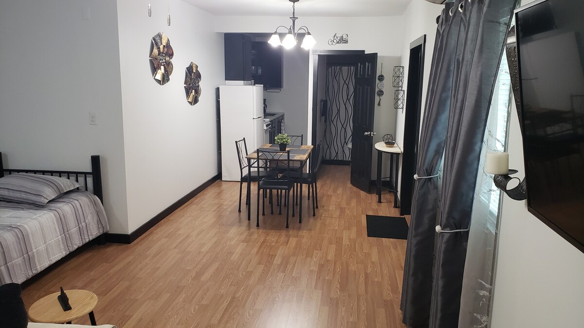 Цей комфортабельний двоповерховий номер з 1 спальнею та 1 ванною кімнатою ідеально підходить для двох-трьох осіб. Це окрема частина нашого будинку з окремим входом. У номері є повністю обладнана кухня з холодильником/морозильною камерою, стільницею, кавоваркою, тостером, блендером, мікрохвильовою піччю та багатьма каструлями, сковорідками та посудом. У вітальні є диван-ліжко queen-size та регульований смарт-телевізор. У спальні є смарт-телевізор, а також зручний диван, який ідеально підходить для відпочинку. **За будь-які викрадені речі стягується плата**